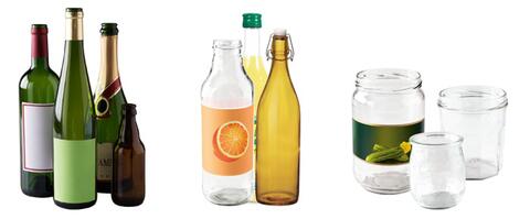 Seuls les bouteilles, les pots et les bocaux en verre peuvent être mis dans le conteneur à verre. Les bouchons, couvercles et capsules doivent être jetés dans le sac noir.